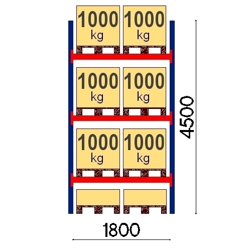 Kaubaaluse riiul põhiosa 4500x1800 1000kg/alus,8 alust OPTIMA