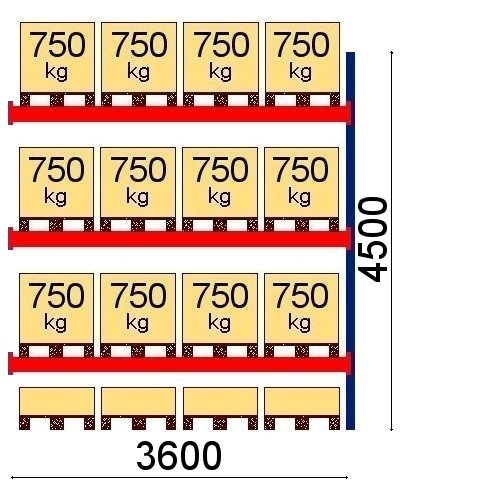 Kaubaaluse riiul lisaosa 4500x3600 750kg/alus,16 alust OPTIMA