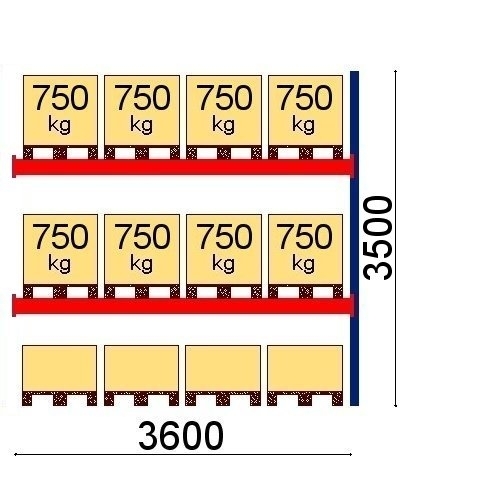 Kaubaaluse riiul lisaosa 3500x3600 750kg/alus,12 alust OPTIMA