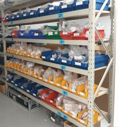 Kõik riiuli külgraamid ja horisontaaltalad on värvitud pulbervärviga helehalliks.