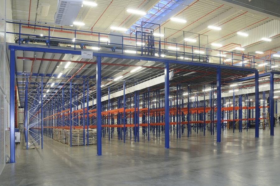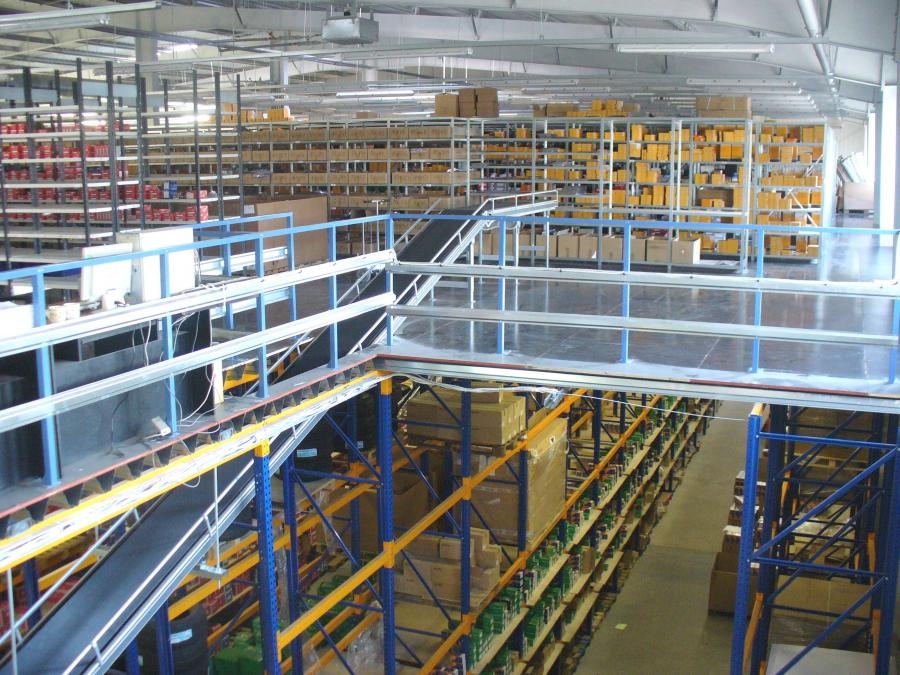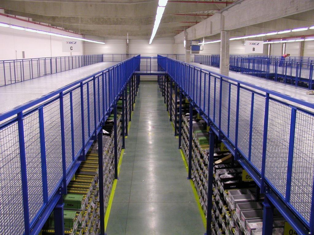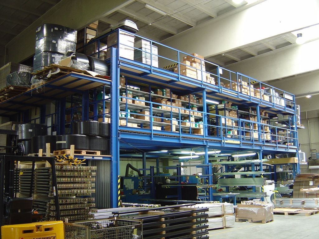 Kaubaaluse riiulitele saab ehitada põranda nii, et esimesel korrusel jääb piisavalt ruumi tõstukitega kauba käsitlemiseks. Ülal on sel juhul laoriiul peenkauba jaoks.