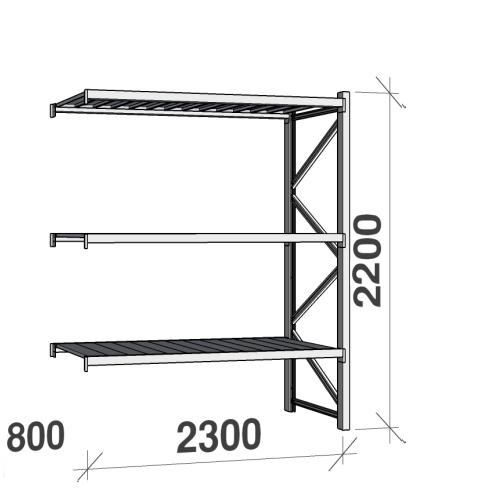 Metallriiul lisaosa 2200x2300x800 350kg/tasapind,3 tsinkplekk tasapinda
