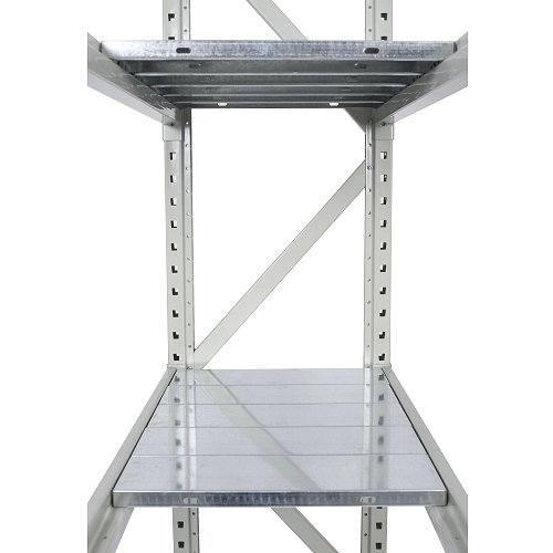 - Kõik riiuli külgraamid ja horisontaaltalad on värvitud pulbervärviga helehalliks.