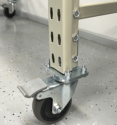 - Kõik riiuli külgraamid ja horisontaaltalad on värvitud pulbervärviga helehalliks.