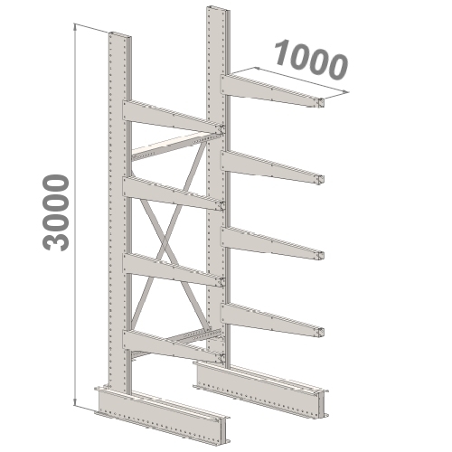- The height of the starter bay is 3000 mm, the length of a cantilever 1000 mm.
