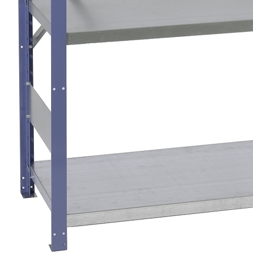 The shelves and side frames are made of galvanised sheet metal.