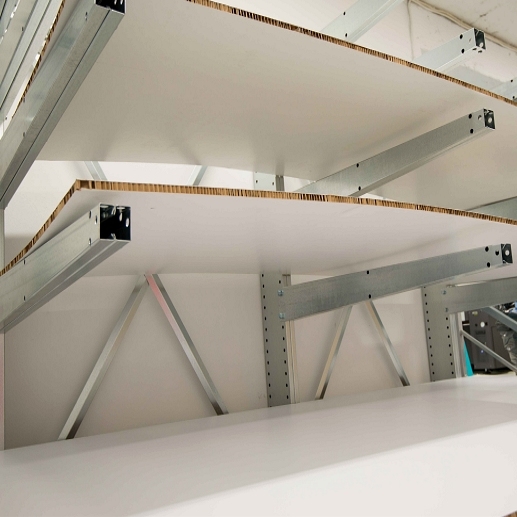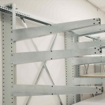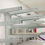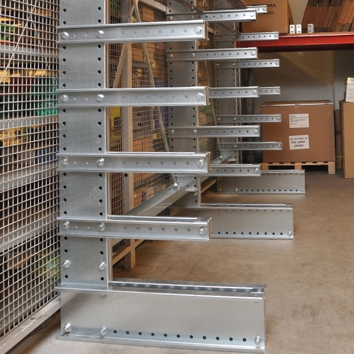 Cantilever racks are designed for the effective storage of goods such as wooden boards or pipes, separation of standing long goods. Due to the possibility of double-sided suspension or use, cantilever racks are characterized as space-saving racks that meet almost every requirement in your warehouse. You can buy cantilever racks in our store in two versions : HEAVY rack - steel powder coated upright in blue, cantilever arms in orange or MEDIUM rack - fully galvanized sheet metal. We realize also individual cantilever racks on request in the form of custom-made products - especially for your individual needs. Please take into account that this may result in longer delivery times. The single-sided or double-sided cantilever racks can be fixed to the floor with the help of bolt anchors. Due to the modular design, you can also expand single-sided and double-sided cantilever racks with additional arms or bays at a later date. The arm load, or the load capacity, of MEDIUM cantilever racks for the 3-4 weeks delivery ranges from 300 kilograms to 450 kilograms, the standard height 2 to 3 meters. The adjustment step of the cantilevers is 50 mm. The depth/length varies of the arms from 600 to 1200 mm.