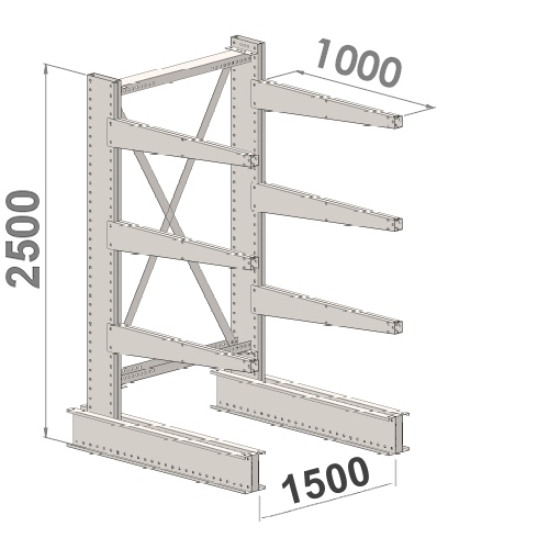 - The height of the starter bay is 2500 mm, the length of a cantilever 1000 mm.