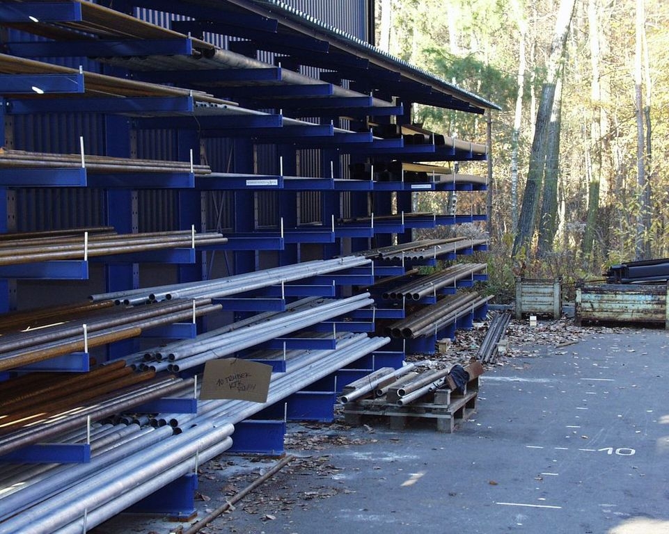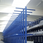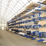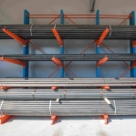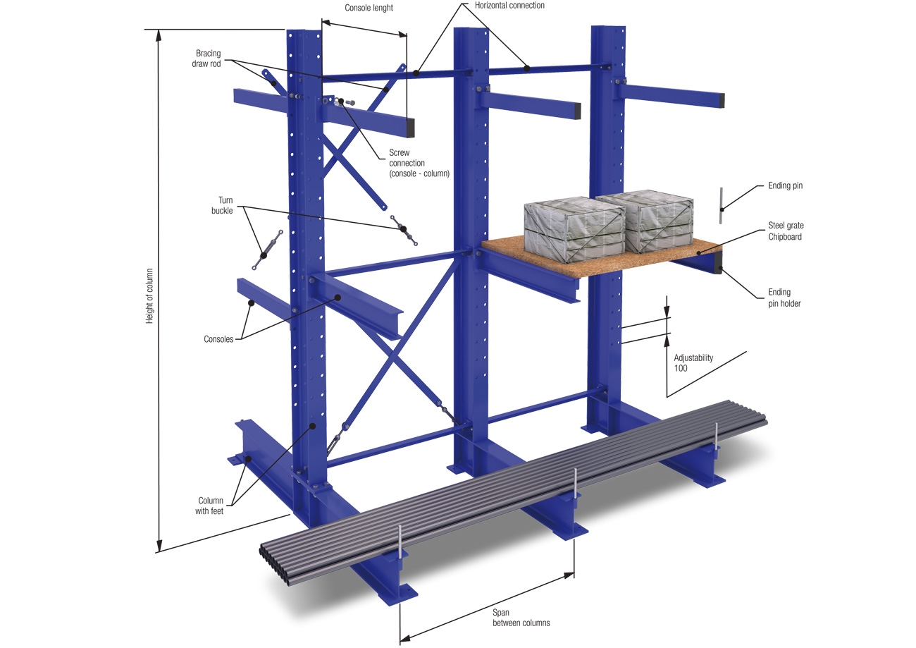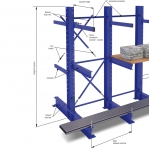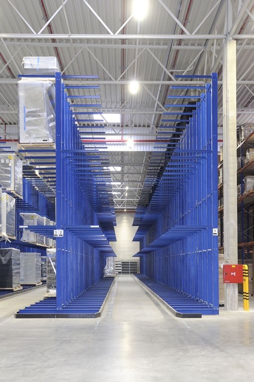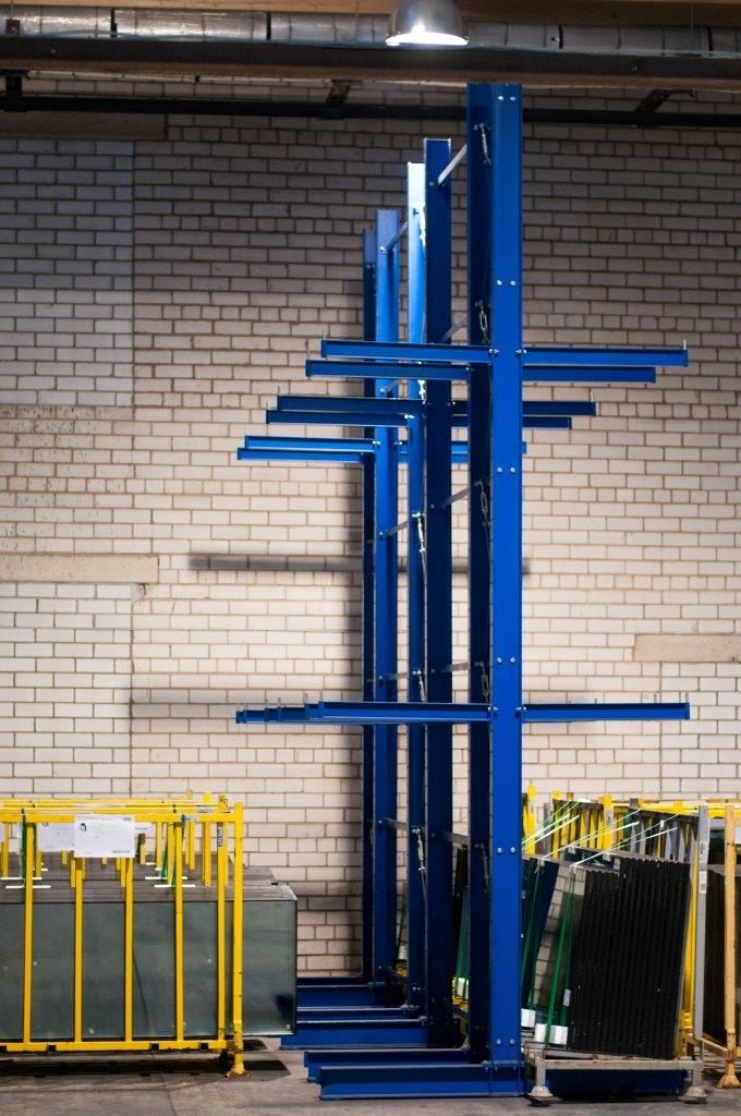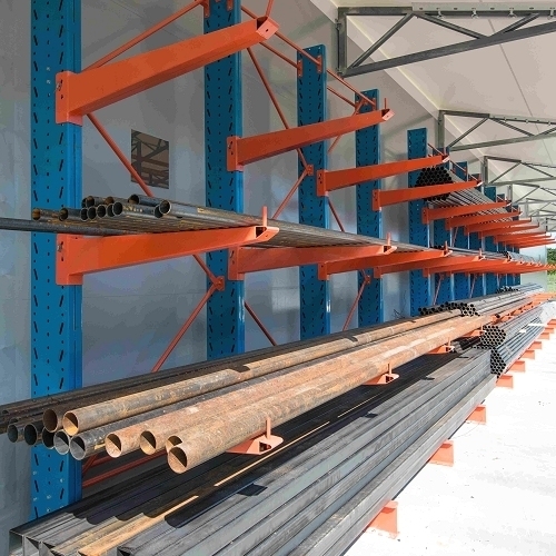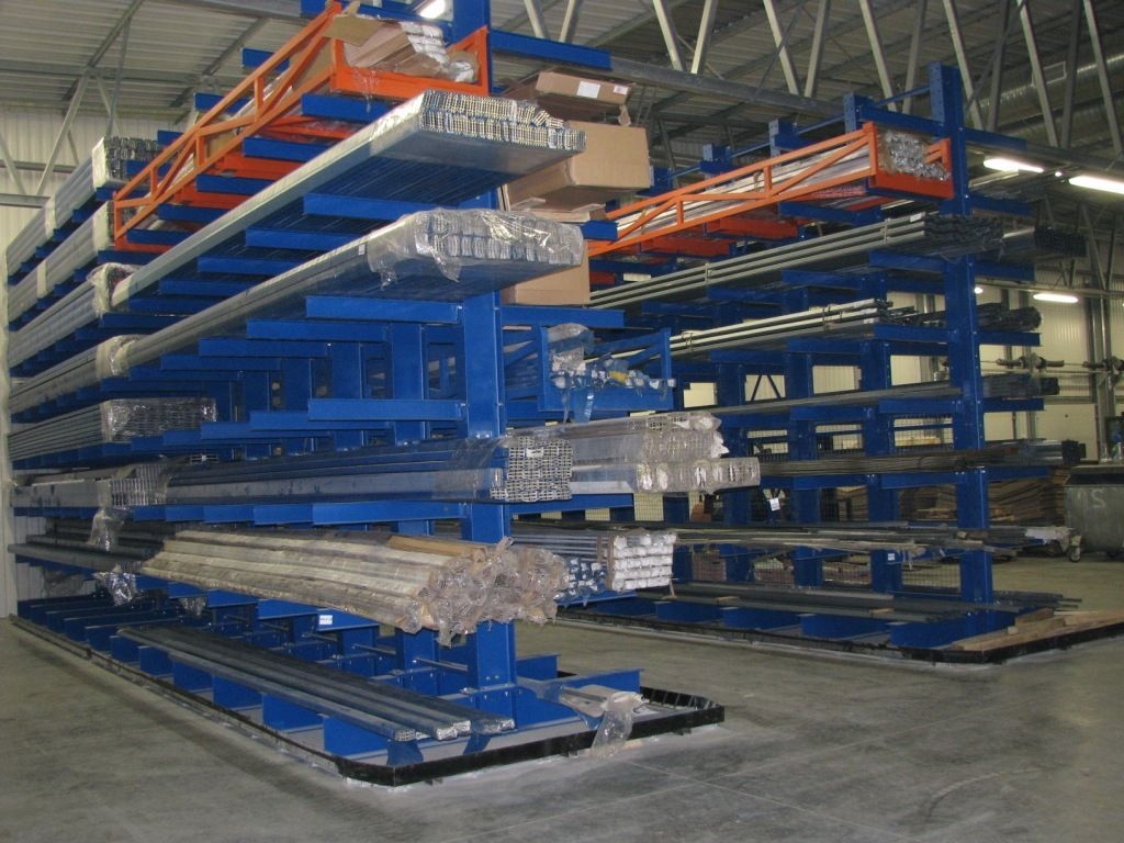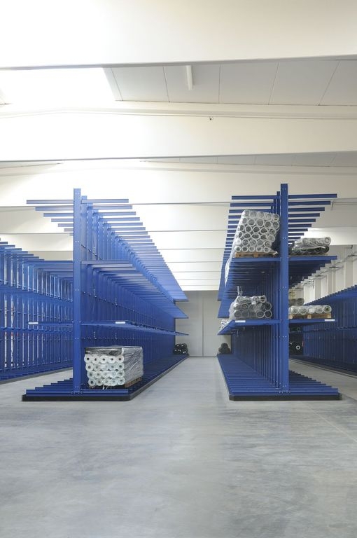 Cantilever racks are designed for the effective storage of goods such as wooden boards or pipes, separation of standing long goods. Due to the possibility of double-sided suspension or use, cantilever racks are characterized as space-saving racks that meet almost every requirement in your warehouse. You can buy cantilever racks in our store in two versions : HEAVY rack - steel powder coated upright in blue, cantilever arms in orange or MEDIUM rack - fully galvanized sheet metal. We realize also individual cantilever racks on request in the form of custom-made products - especially for your individual needs. Please take into account that this may result in longer delivery times. The single-sided or double-sided cantilever racks can be fixed to the floor with the help of bolt anchors. Due to the modular design, you can also expand single-sided and double-sided cantilever racks with additional arms or bays at a later date. The arm load, or the load capacity, of our cantilever racks ranges from 300 kilograms to 1200 kilograms, depending on the system. The standard height of our long goods racks depending on the selected variant, are from 2 to 5 meters.