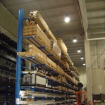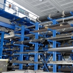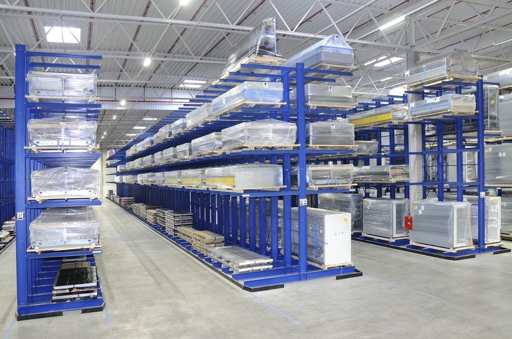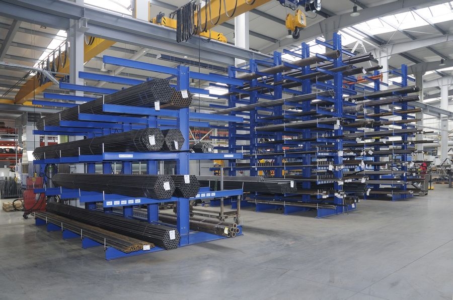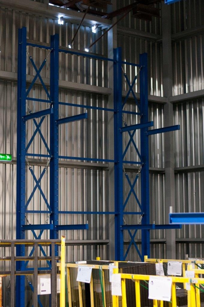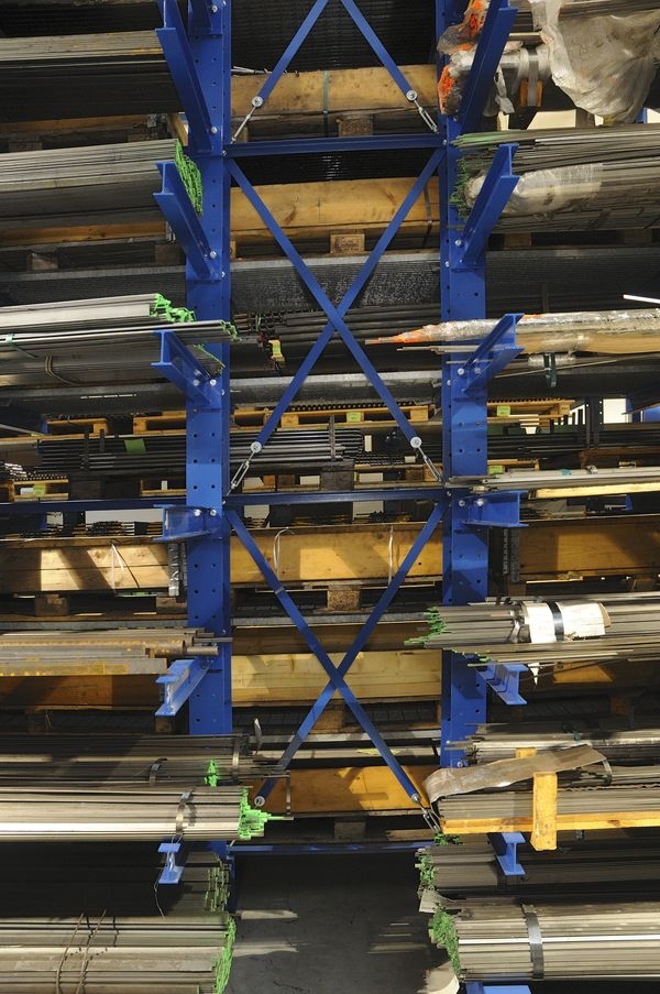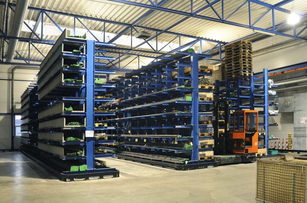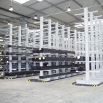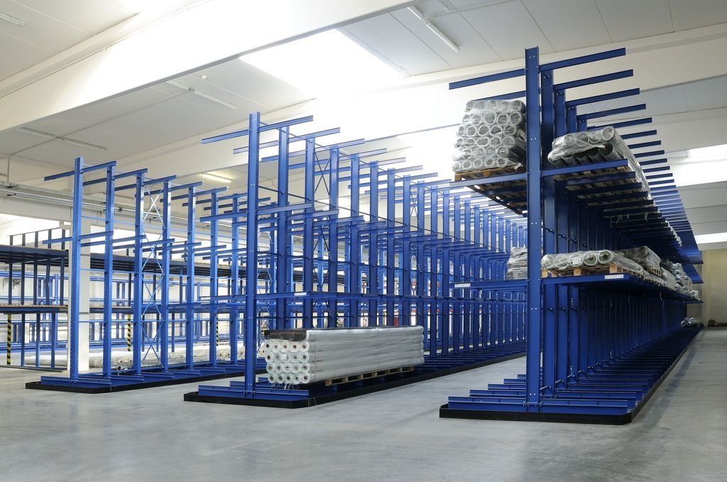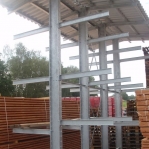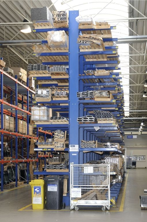 Cantilever racks are designed for the effective storage of goods such as wooden boards or pipes, separation of standing long goods. Due to the possibility of double-sided suspension or use, cantilever racks are characterized as space-saving racks that meet almost every requirement in your warehouse. You can buy cantilever racks in our store in two versions : HEAVY rack - steel powder coated upright in blue, cantilever arms in orange or MEDIUM rack - fully galvanized sheet metal. We realize also individual cantilever racks on request in the form of custom-made products - especially for your individual needs. Please take into account that this may result in longer delivery times. The single-sided or double-sided cantilever racks can be fixed to the floor with the help of bolt anchors. Due to the modular design, you can also expand single-sided and double-sided cantilever racks with additional arms or bays at a later date. The arm load, or the load capacity, of our cantilever racks ranges from 300 kilograms to 1200 kilograms, depending on the system. The standard height of our long goods racks depending on the selected variant, are from 2 to 5 meters.