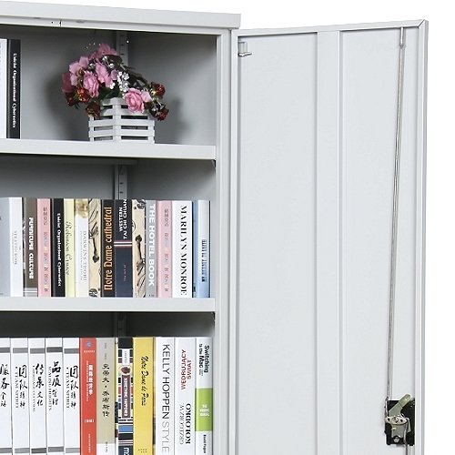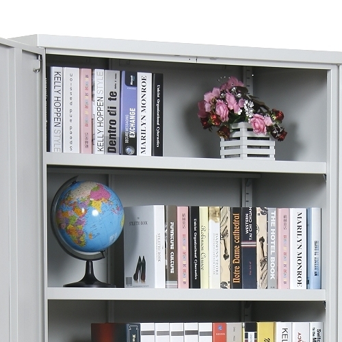 • Standard equipment includes four light gray reinforcement ribs shelf plates with adjustable height.