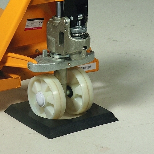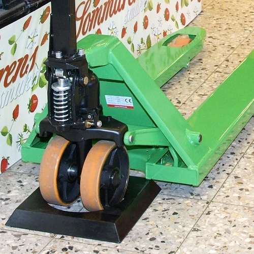 - Unique stop-it brake in rubber that holds all types of pallet trucks in place during transport or simply keeps them in a permanent place in the workplace when they are not in use.