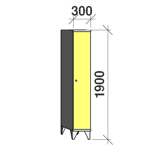 - The dimensions of the locker with legs are H x W x D (mm) 1900 x 300 x 545.