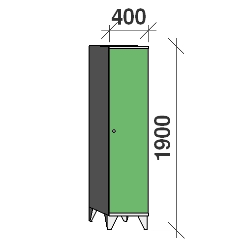 - The dimensions of the locker with legs are H x W x D (mm) 1900 x 400 x 545.