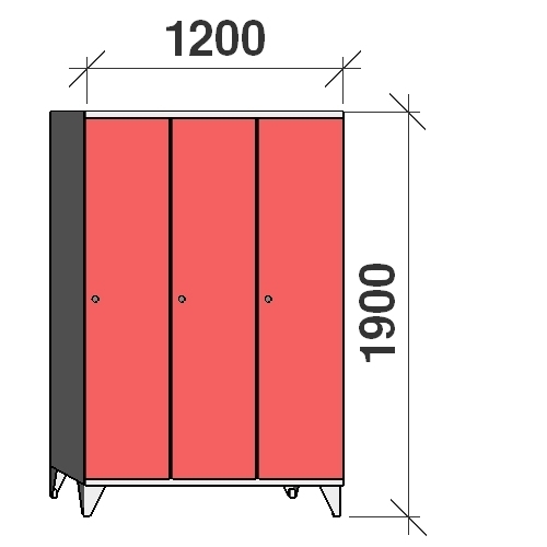 - The dimensions of the locker with legs are H x W x D (mm) 1900 x 1200 x 545.