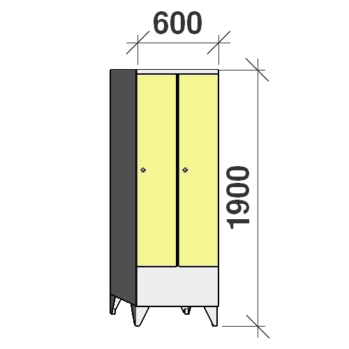 - The dimensions of the locker with legs are H x W x D (mm) 1900 x 600 x 545.