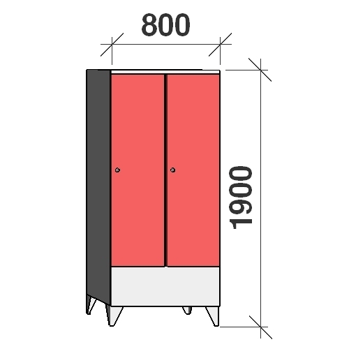 - The dimensions of the locker with legs are H x W x D (mm) 1900 x 800 x 545.