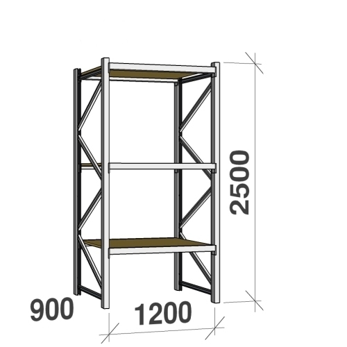 Starter bay 2500x1200x900 600kg/level,3 levels with chipboard
