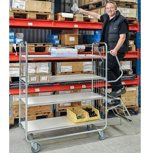 Flexibel shelf trolley 4 shelves 1195x470x1590mm, 250kg/2 wheels w.brakes