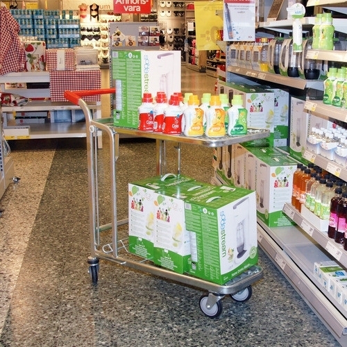 - A stable and flexible trolley with two shelves which can cope with a load of up to 300 kg.