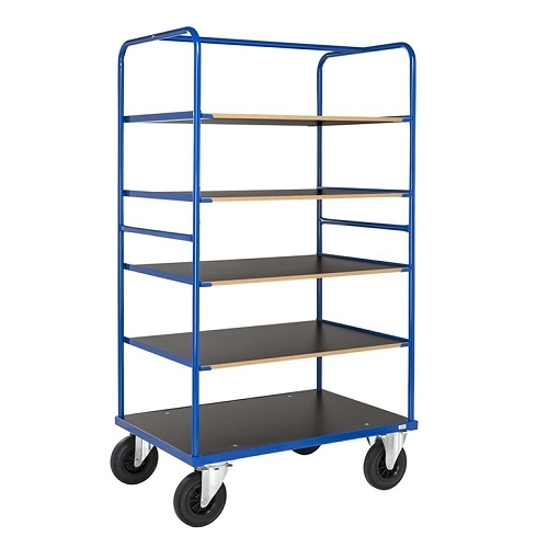 Robust shelf trolley . Available in several sizes and with or without brake. The serie 300 also offers table trolley, shelf trolley, box trolley, end panel trolley and other variants of the platform trolley.