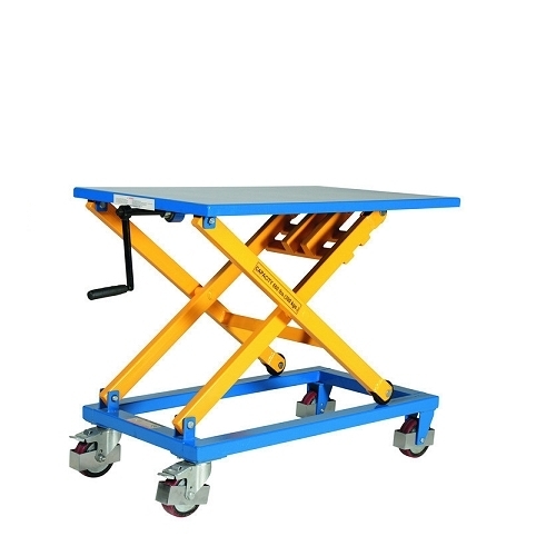 - Manual lifting table the height of which is adjusted with a crank.