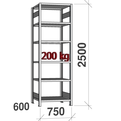 Starter bay 2500x750x600 200kg/shelf,6 shelves