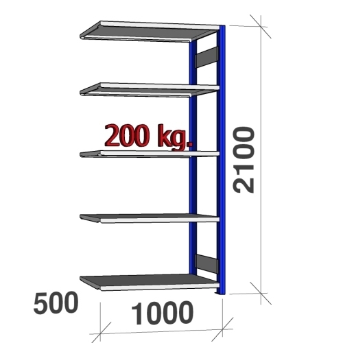 Extension bay 2100x1000x500 200kg/shelf,5 shelves, blue/light gray