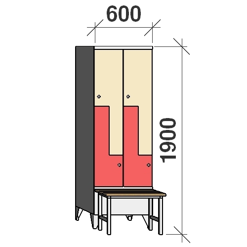 - The dimensions of the locker with bench are H x W x D (mm) 1900 x 600 x 845.