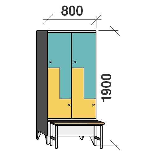- The dimensions of the locker with bench are H x W x D (mm) 1900 x 800 x 845.