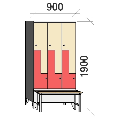 Z-locker 1900x900x845, 6 doors, with bench